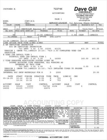 GM CERTIFIED! * ALL-NEW EQUINOX EV! * MASSIVE 17.7-IN SCREEN! * SUPERCRUISE! * HEATED SEATS WHEEL * NAV * ADAPTIVE CRUISE * BLIND ZONE ALERT * WIRLESS CARPLAY * POWER LIFTGATE * WHAT IS GM CERTIFICATION? HOW ABOUT A 12/MONTH 12 000-MILE FACTORY BACKED NEAR BUMPER-TO-BUMPER WARRANTY AND AN EXTENSION OF THE POWERTRAIN WARRANTY TO A FULL SIX YEAR/100 000 MILES FROM NEW! OH YEAH YOU ALSO GET TWO COMPLIMENTARY SERVICES AT DAVE GILL CHEVY OR ANY GM DEALER IN NORTH AMERICA! * 2024 Chevrolet Equinox EV LT Electric Drive Unit Sterling Gray Metallic GM Factory CPO Certified Vehicle ONE OWNER! CLEAN CARFAX! 19"" Wheels 6-Speaker Audio System Feature 8-Way Power Driver Seat Adjuster Active Cruise Control Active Safety Package 3 AM/FM radio: SiriusXM with 360L Automatic temperature control Driver 4-Way Power Lumbar Control Enhanced Automatic Parking Assist Evotex Seat Trim Heated Driver & Fr Passenger Seats Cushion & Seatback Heated steering wheel Navigation system: Google built-in compatibility (select service plan required terms and limitations apply) Power Liftgate Preferred Equipment Group 2LT Radio: 17.7"" Diagonal Advanced Color LCD Display SiriusXM w/360L Super Cruise.Your peace of mind is important to us. We have included over 24 photos so that you can judge the condition of this vehicle yourself. As you do your comparison shopping you will see Dave Gill Chevrolet offers some of the best values in the market for your hard-earned money. Our commitment to customer satisfaction is our number one priority and we do not use high-pressure sales tactics. We inspect and service all our used cars as necessary; not simply take it to the local car wash and use their free vacuums. We will provide you a Carfax vehicle inspection results and how we arrived at the price. We may not always be the lowest but if you want to know who is we will show you that too. Call or stop by Dave Gill Chevrolet at 4700 E. Broad Street in Columbus to schedule a test drive today. Serving the Greater Columbus Area. We are just minutes from Port Columbus Airport and offer free pick-up for our out-of-town guests.CARFAX One-Owner. Clean CARFAX.